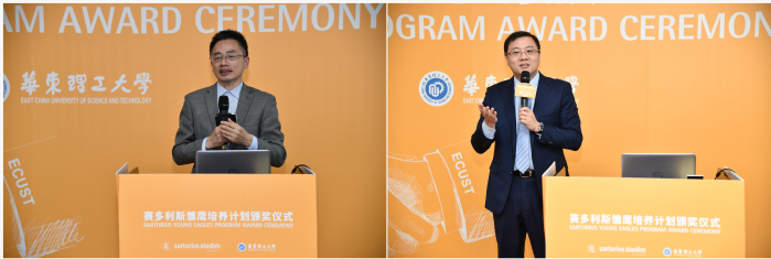 在典礼上,陆兵首先感谢赛多利斯雏鹰计划,为生工学子提供了学习和实践的优秀平台,并祝贺获奖同学,最后勉励同学们好好学习专业知识,善于抓住机会和机遇,不断学习和进步,为生物医药行业的发展贡献力量。