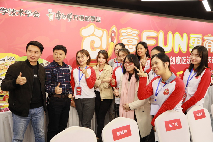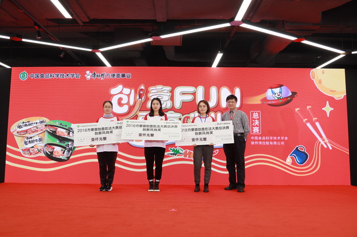 12月8日,由中国食品科学技术学会、康师傅控股有限公司主办的“2018康师傅方便面创意吃法大赛”总决赛在闵行区康师傅大楼举行。我校参赛选手沈瑜、连昱涵、潘小旭、刘昱妏的作品“小仙女VS隔壁老王”荣获产品创意奖,吴安迪、王明达、陈怡君、陆丹琳的作品“干!面”荣获创新风尚奖。康师傅集团上海地区董事长杨乾辉先生、康师傅集团副总裁王世琦先生及中国食品科学技术学会副理事长金征宇、中国食品科学技术学会名誉副理事长潘迎捷教授等出席大赛并给获奖选手颁奖。