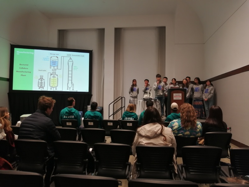 今年,华东理工大学代表队的项目名称是"纸变形金刚"(Paper Transformer)。废纸重新用于造纸过程中的关键问题是纸张纤维不断变短、降级,需要添加新的木质纤维素。项目组通过基因工程手段设计可调控的基因电路,使改造的基因工程大肠杆菌("纸变形金刚")能利用废纸浆中的短纤维素,合成和生产长链的细菌纤维素,并将该细菌再气升式发酵罐中大规模生产细菌纤维素。项目组进一步设计了整套生产工艺和发酵工厂,用于大规模发酵生产细菌纤维素。同时,项目组用3D打印技术将发酵生产车间打印成3D模型,良好地展示了整个项目。生产的细菌纤维素除了用于造纸生产普通纸张,还能够用于生产特种纸张和其他生物材料,用途非常广泛。