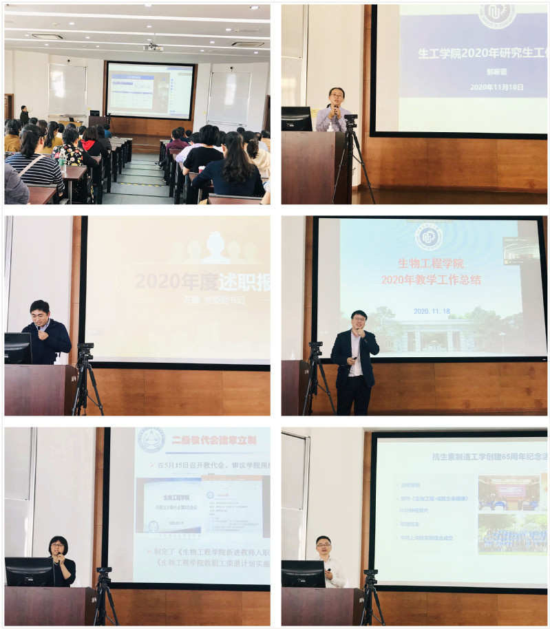 科研和国重室工作、研究和学科工作、学生工作、本科教学工作、工会工作、校友和安全及教师思政工作做了总结汇报。党委副书记、院长庄英萍作了澳门金沙娱乐城
