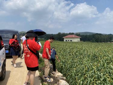 最后一站,实践团一行来到临沂市平邑县黄草坡村,这里有着的“谷比米贵”的说法,说的是黄草坡村的谷子要比周边村庄的小米还要贵。实践团成员躬身田间地头,了解谷子长势,同时对作物和土壤进行采样,向农户了解黄小米的种植历史和食用方法,去合作社参观了小米简易处理的大型设备机器,向工作人员和村书记了解黄草坡黄小米的销售途径、收购情况和收入利润等,对黄草坡黄小米有了更全面的认识,也明晰了该村发展中存在的问题——村子处于山涧沟壑之中,道路不够通畅,大型机械化收割设备因地形和空间原因不方便使用,作物种植还是主要依靠高龄劳动力。