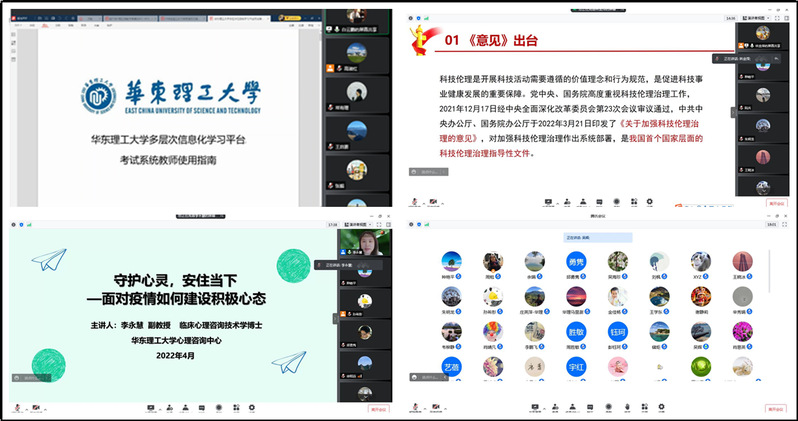 坚持每周二下午组织全院教职工在“云端”相聚,进行理论学习,并开展教学、科研、学生工作等方面的沟通和交流,保证在线教学顺利进行,保障科研工作稳步推进,守护师生身心健康。