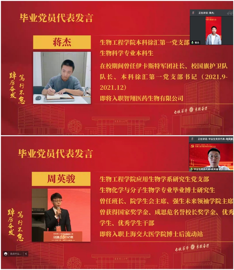 毕业生党员纷纷表示,在今后的学习和工作中,一定坚定理想信念,践行初心使命,踔厉奋发、勇毅前进,为中国人民谋幸福,为中华民族谋复兴,以实际行动迎接党的二十大胜利召开!