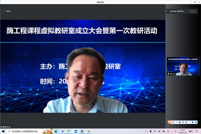 为贯彻落实“十四五”教育发展规划有关部署,以立德树人为根本任务,提升高等教育质量,酶工程课程虚拟教研室于2022年7月29日在线上召开了“酶工程课程虚拟教研室成立大会暨第一次教研活动”。来自全国14所高校的20余名酶工程课程教师代表参会,会议由澳门金沙娱乐城(中国)官方网站