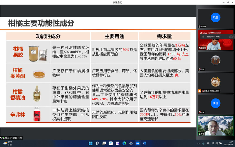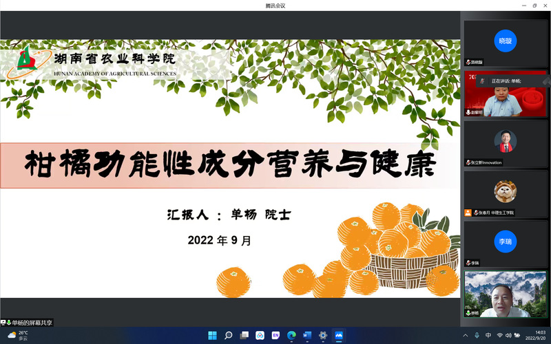 院长单杨院士在线出席了华东理工大学70周年校庆报告活动暨第二十六期俊棠论坛。单杨院长作了题为“柑橘功能性成分的营养与健康”的学术报告,报告会由科学技术发展研究院院长赵黎明教授主持,生物反应器工程国家重点实验室主任张立新教授等近300名校内外师生在线聆听了报告。