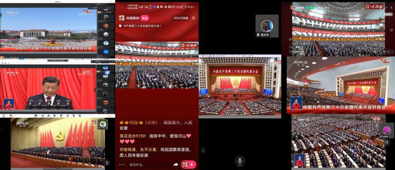 广大师生通过网络、电视等多渠道收看开幕会盛况,同时组织全体教工在腾讯会议室统一观看党的二十大开幕会,认真学习讨论党的二十大报告。